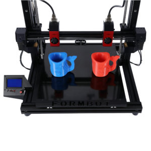 - Independent dual extruder (IDEX): possibility of printing 2 materials at a time or 2 identical objects simultaneously.